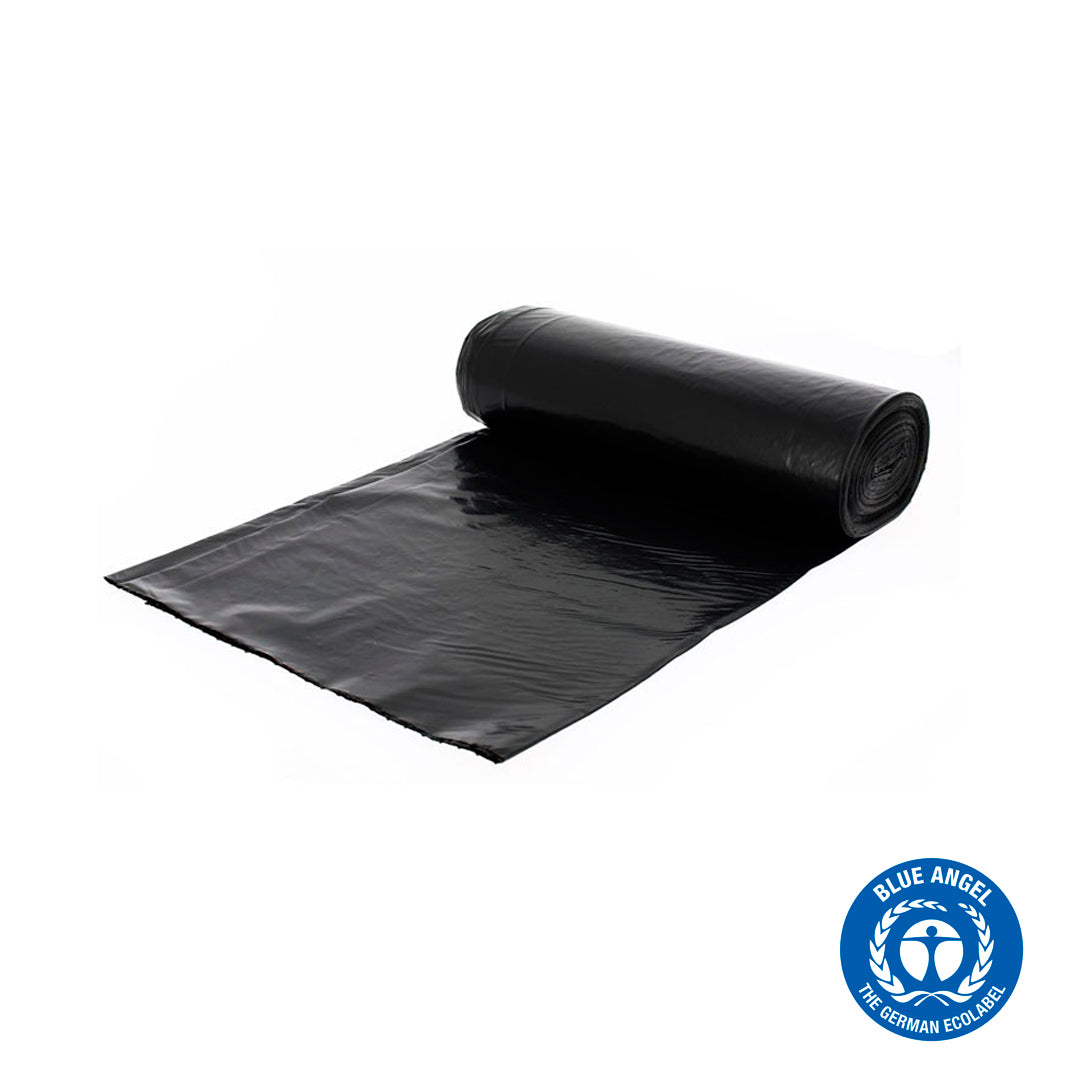 Bosses d' escombraries 100% reciclades 100% reciclables. Les nostres bosses estan avalades per l'eco-etiqueta Angel Azúl (Blue Angel, o Blauer Engel), la primera i més longeva certificació de productes respectuosos amb el medi ambient a nivell mundial. És un dels segells més exigents en fabricació, ús, i gestió de residus. Les bosses de plàstic estan compostes per un material termoplàstic, és a dir, un material que és capaç de ser repetidament ablantat mitjançant l' aplicació de calor i que després s' endureix en refredar-se. Per tant pot ser reciclat.