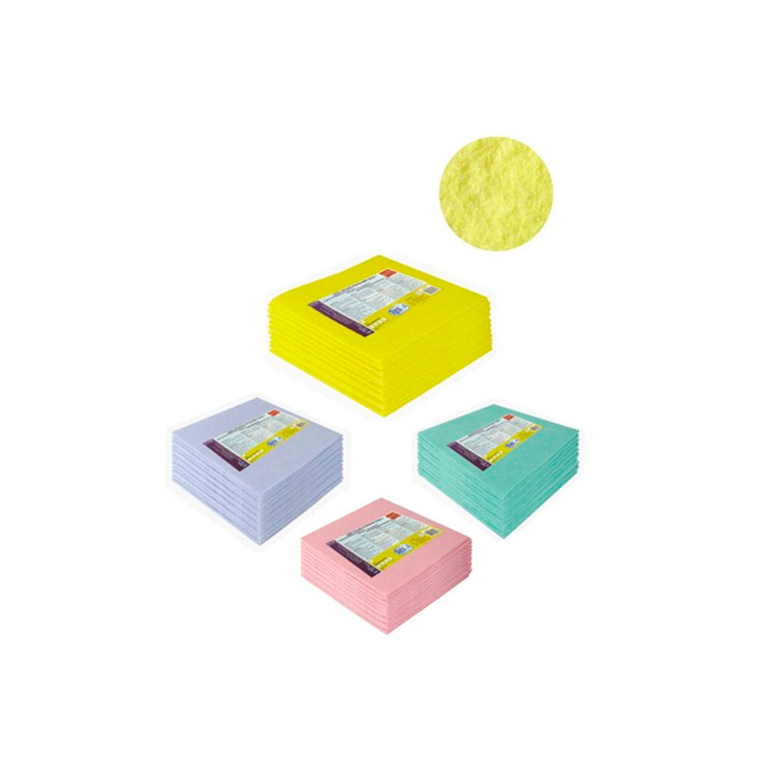 Molt absorbent. Bayeta suau multiusos de teixit sense teixir gaire absorbent. Bona solidesa del color i la fibra enfront de lleixius, productes químics, detergents, dissolvents, etc.