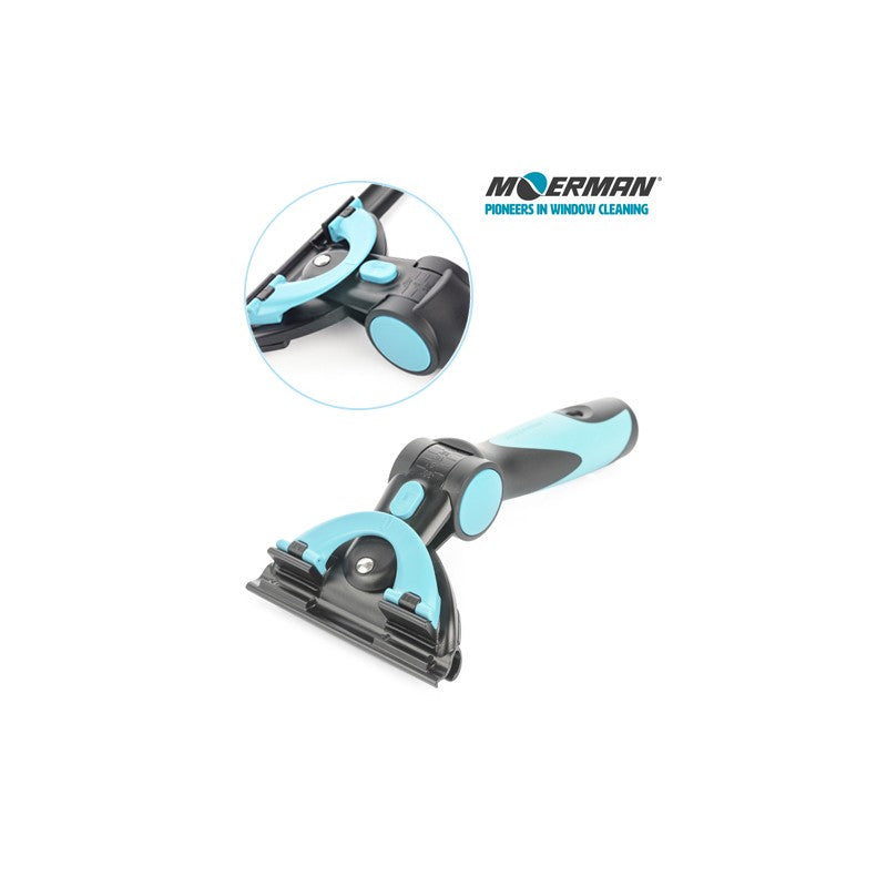 Empunyadura Excelerator 2.0 per a professionals de la neteja de vidres, finestres, finestrals i miralls sense deixar vetes ni restes d' aigua. Perfecte per utilitzar-lo com a netejacristalls (amb la vareta 2.0) i rentavidres (amb vareta +velló Fl*iq). Molt resistent i durador per la seva estructura en acer inoxidable, anticorrosiu. Angle adaptable: 20 °, -5 °, + 10 °, + 25 °, + 40 ° Nou sistema de subjecció a la vareta, més fàcil d' usar. Fàcil canvi de vareta i goma. Compatible amb vareta Liquidator 2.0 (de 25, 35, 45 i 55 cm.) i velló F*liq (de 25, 35 i 45 cm). També compatible amb la vareta inox moerman disponible en goma tova de 25, 35 i 45 cm (especial per a zones fredes i humides) i goma dura de 25, 35 i 45 cm (ideal per a zones càlides i superfícies amb lleugera rugositat). Es pot utilitzar amb els nostres mànecs telescòpics línia Sky, Blue i Moerman. Color: Mànec en color negre antilliscant.