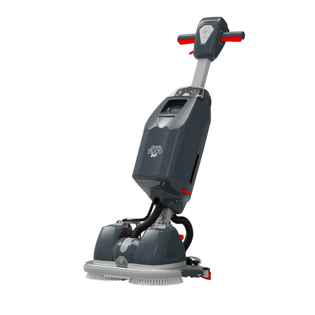 Fregadora compacta per utilitzar en qualsevol espai. La 244NX optimitza l' ús d' aigua neta mitjançant l' ús d' una alimentació directa al centre dels raspalls. L'entrega centrífuga de l'aigua a través dels raspalls minimitza l'ús general d'aigua, no té una polvorització desordenada i augmenta l'eficiència en reduir les recàrregues que consumeixen molt de temps.