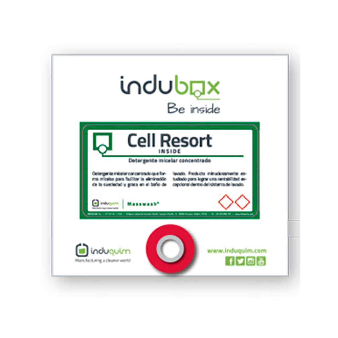 El detergent CELL RESORT és un dels quatre productes utilitzats per realitzar l'exclusiu sistema de rentat Smart Resort®. El sistema de rentat Smart Resort® està especialment estudiat per eliminar taques comunes a la roba hotelera (llençços i tovalloles). Smart Resort® respecta i té cura dels teixits de la roba més delicada, oferint una higienització i suavitat total a les peces. Cell Resort és un detergent micelar, el qual forma micel·les que faciliten l'eliminació de la suecietat i greix al bany de rentat. Producte minuciosament estudiat per aconseguir una rendibilitat excepcional dins del sistema de rentat.