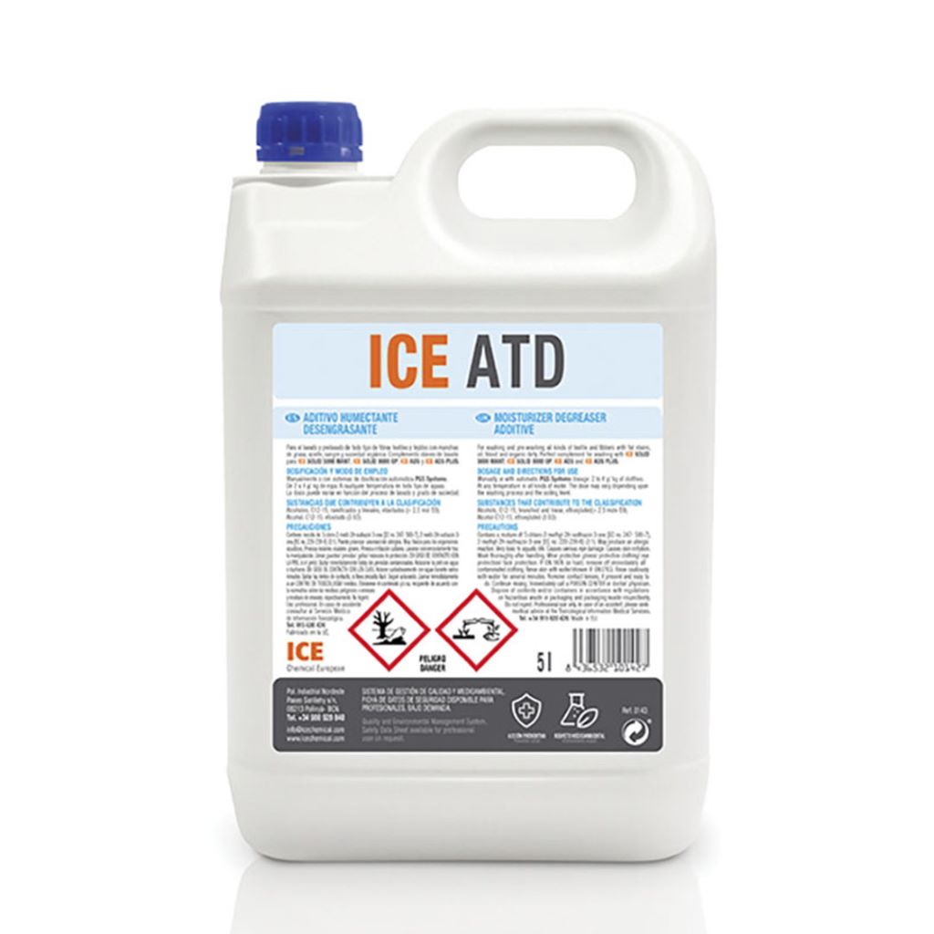 Detergent per al prelavat i rentat de tot tipus de teixits. Les seves característiques químiques, permet eliminar sense esforç taques de greix, oli, sang i brutícia orgànica, a qualsevol temperatura en tot tipus d' aigües. Complement idoni de rentat per a ICE SOLID 5000 MANT, ICE SOLID 8000 OP, ICE ADS i ICE ADS PLUS.