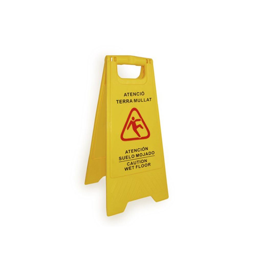 Senyal avís sòl mullat impresa en dos idiomes, Espanyol-Anglès.Mesures: 31.5 x 28.5 x 64